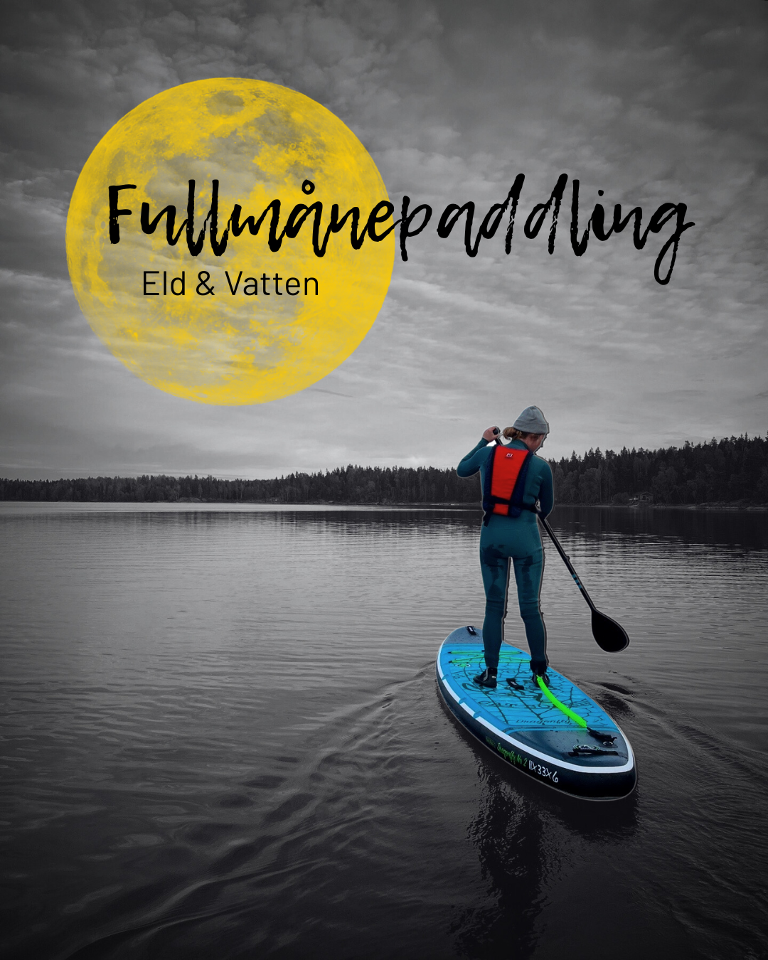 När skymningen faller över Fredriks sjö glider vi ut på SUP-brädor och låter andetagen bli långsammare. Den friska höstluften fyller oss, kinderna blir kalla och elden väntar vid strandkanten.